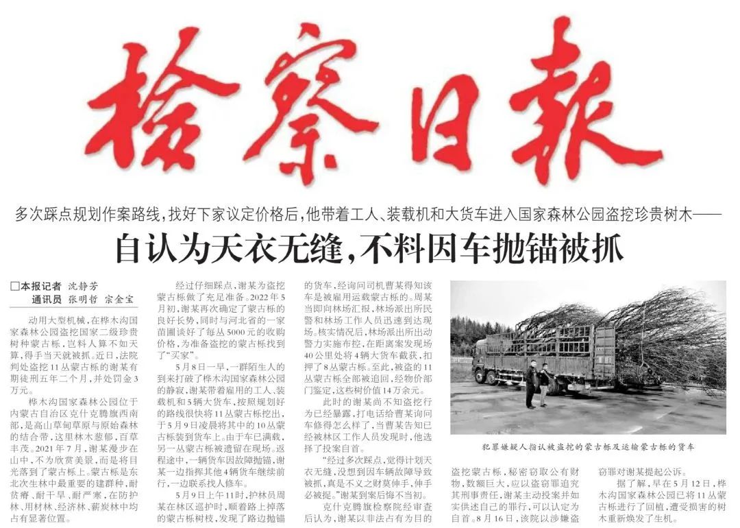12月20日《检察日报》第8版 动用大型机械,在桦木沟国家森林公园盗挖国家二级珍贵树种蒙古栎,岂料人算不如天算,得手当...