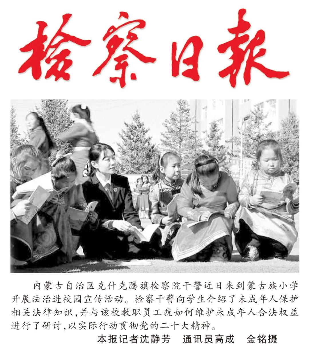 11月9日《检察日报》第2版 内蒙古自治区克什克腾旗检察院干警近日来到蒙古族小学开展法治进校园宣传活动。检察...